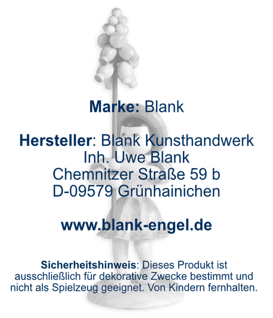 Unsere filigranen, handbemalten Blumenkinder erwecken den Frühling zum Leben! Liebevoll handgefertigt von Blank Kunsthandwerk im Erzgebirge, tragen diese kleinen Holzfiguren die Freude der Natur ins Haus und zaubern ein Lächeln auf jedes Gesicht.