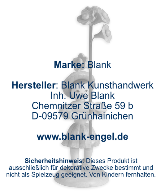 Unsere filigranen, handbemalten Blumenkinder erwecken den Frühling zum Leben! Liebevoll handgefertigt von Blank Kunsthandwerk im Erzgebirge, tragen diese kleinen Holzfiguren die Freude der Natur ins Haus und zaubern ein Lächeln auf jedes Gesicht.
