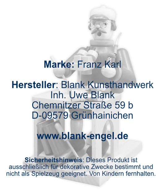 Die Figuren der Marke Franz Karl, ursprünglich aus Venusberg, werden seit dem Jahr 2000 in unseren Werkstätten in Grünhainichen bei Blank Kunsthandwerk nach den bekannten Mustern und der vertrauten Formensprache gefertigt.