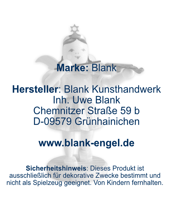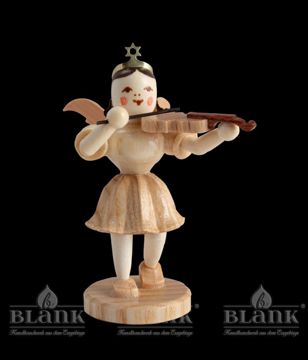 Dieser kleine Kurzrockengel mit dem einzigartigen Faltenröckchen von BLANK Kunsthandwerk spielt hingerissen auf einer filigranen Bratsche. Er begleitet damit das große Engelorchester, das in aufwendiger Handarbeit in unserer Engelwerkstatt im Erzgebirge entsteht. Die naturfarbene Figur ist aus verschiedenen heimischen Hölzern hergestellt und wird in ca. 135 Arbeitsschritten mit viel Liebe zum Detail zusammengesetzt. Malerinnen verleihen dem Engel schließlich einen freundlichen Ausdruck, sodass er jeden allein, oder im Ensemble, verzaubern kann.