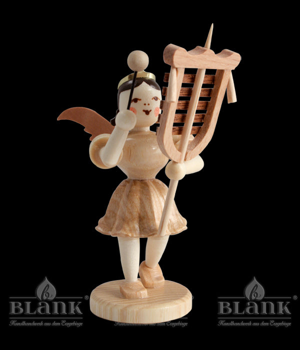 Dieser kleine Kurzrockengel mit dem einzigartigen Faltenröckchen von BLANK Kunsthandwerk spielt eine fröhliche Weise auf seinem fein gearbeiteten Schellenbaum. Er begleitet damit das große Engelorchester, das in aufwendiger Handarbeit in unserer Engelwerkstatt im Erzgebirge entsteht. Die naturfarbene Figur ist aus verschiedenen heimischen Hölzern hergestellt und wird in ca. 135 Arbeitsschritten mit viel Liebe zum Detail zusammengesetzt. Malerinnen verleihen dem Engel schließlich einen freundlichen Ausdruck, sodass er jeden allein, oder im Ensemble, verzaubern kann.