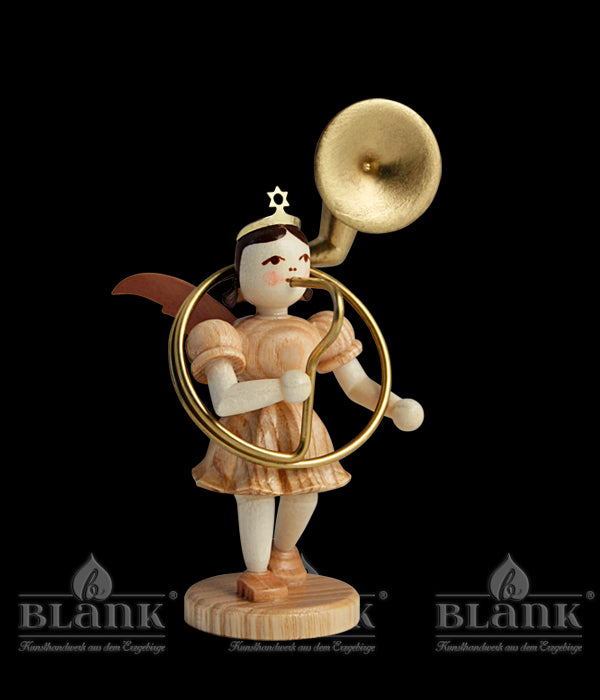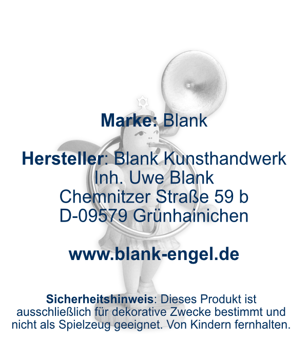 Dieser kleine Kurzrockengel mit dem einzigartigen Faltenröckchen von BLANK Kunsthandwerk spielt eine Melodie auf seinem beeindruckenden Sousaphon, das er um den Körper trägt. Er begleitet damit das große Engelorchester, das in aufwendiger Handarbeit in unserer Engelwerkstatt im Erzgebirge entsteht. Die naturfarbene Figur ist aus verschiedenen heimischen Hölzern hergestellt und wird in ca. 135 Arbeitsschritten mit viel Liebe zum Detail zusammengesetzt. Malerinnen verleihen dem Engel schließlich einen freundlichen Ausdruck, sodass er jeden allein, oder im Ensemble, verzaubern kann.