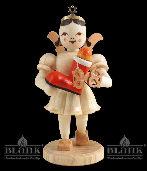 Sonderedition der Figurengruppe "Weihnachtstraum" für den Fachhandelsring - Der kleine Kurzrockengel scheint ganz aufgeregt: in den Händen trägt er einen leuchtend roten, prall gefüllten Nikolausstiefel, aus dem ein knackiger Apfel und feine Lebkuchenbrezeln ragen. Die Figur wird in unseren Engelwerkstätten liebevoll handgefertigt und filigran verziert. Sie ist ein echtes Original feinster erzgebirgischer Handwerkskunst - "Echt Erzgebirge. Holzkunst mit Herz®".