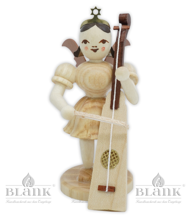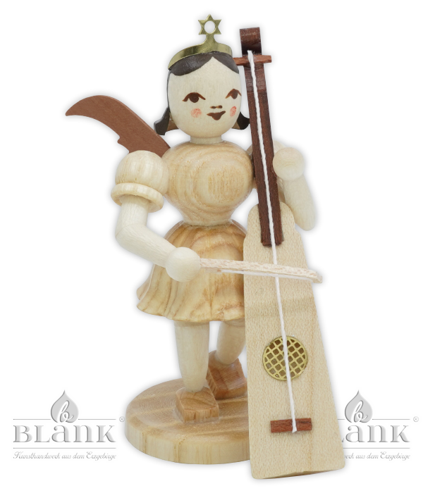 Der Kurzrockengel mit Trumscheit bringt ein ganz besonderes Instrument in deine Sammlung. Das Trumscheit ist ein seltenes, historisches Saiteninstrument, das man heute kaum noch kennt – und genau das macht seine Miniatur so spannend. Der Engel hält einen hellen, dreieckigen Klangkörper mit einer Saite und einem rotbraunen Griffstück. Besonders schön ist die feine Messing-Ätzplatte mit Rautenmuster, die das Schallloch schmückt. Dazu kommt ein winziger, bespannter Bogen – gerade einmal etwa 2 cm lang! Wie immer wird jeder Engel in Grünhainichen von Hand gefertigt und trägt das Qualitätssiegel Echt Erzgebirge. Holzkunst mit Herz.