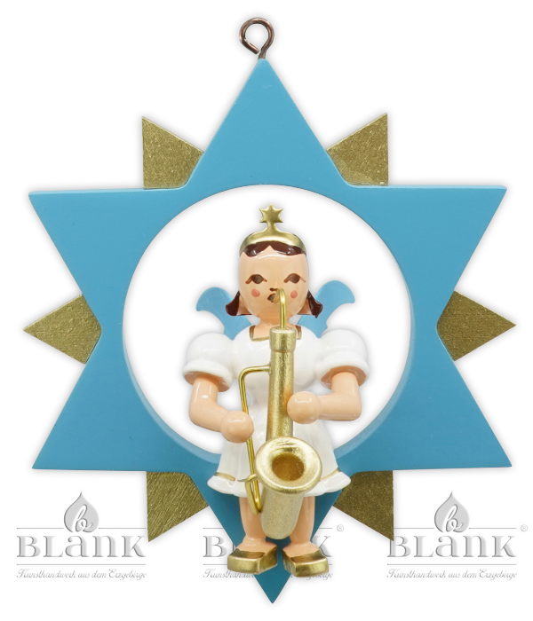 Engel im Stern mit Saxophon, farbig